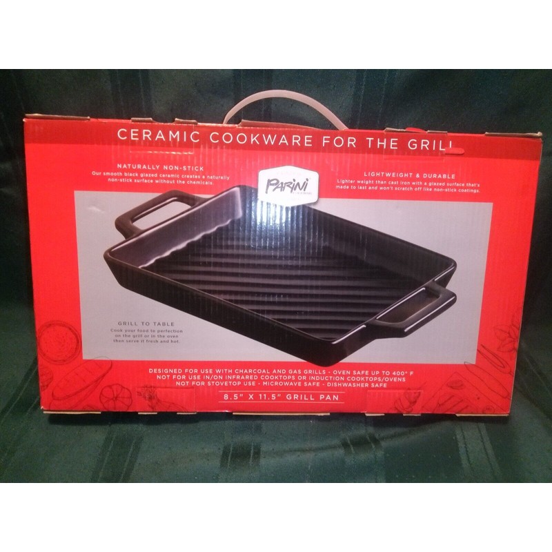 Parini Glazed Black Ceramic Grill Pan Cookware Rectangle 11.5" x 8.5" New WP253