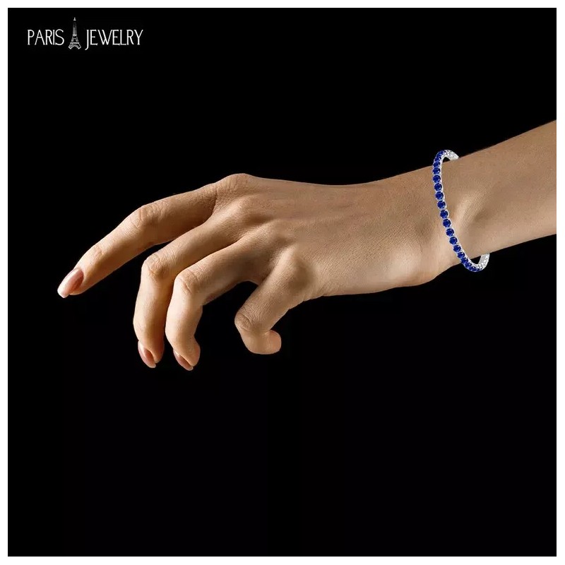 Paris Jewelry 18k White Gold 6 Cttw Created Blue CZ Round Adjustable Tennis Plated Bracelet
