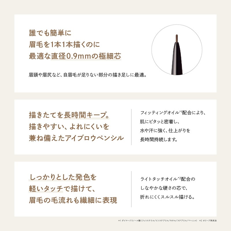 - How to Use: 1. Apply one by one of the areas that do not have enough eyebrows such as the head, brow butt, and middle. 2. Use the screw brush on the back of the pencil to blur the parts that have become too dark. Because it is ultra-fine, it may break if you put it at least 0.04 inch (1 mm) in