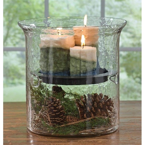 Park Designs Hammered Glass Cylinder with Candle Pan