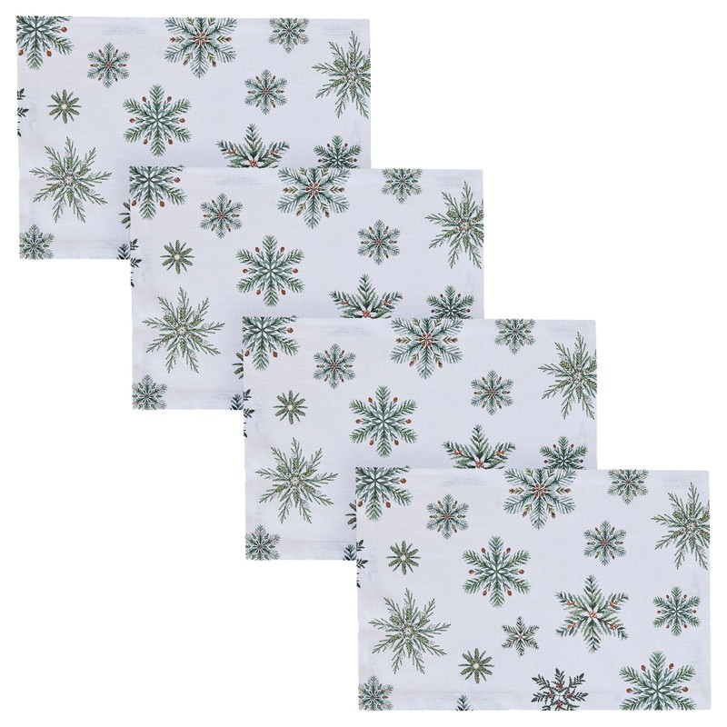 Park Designs Holiday Snowfall Placemat Set of 4, Green Snowflake 13X19 Inch Holiday Place Setting for Christmas & Winte Decor, 100% Cotton White Reusable Table Mat for Seasonal Use, Machine Washable