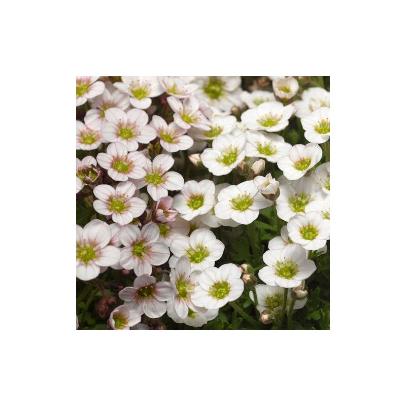 - A Saxifraga x arendsii variety, commonly called saxifrages or rockfoils, Lofty White Blush Saxifrage has a compact, mounding habit. It grows vigorously and spreads over time, forming dense, moss-like mats of tiny emerald green leaves in attractive rosettes.