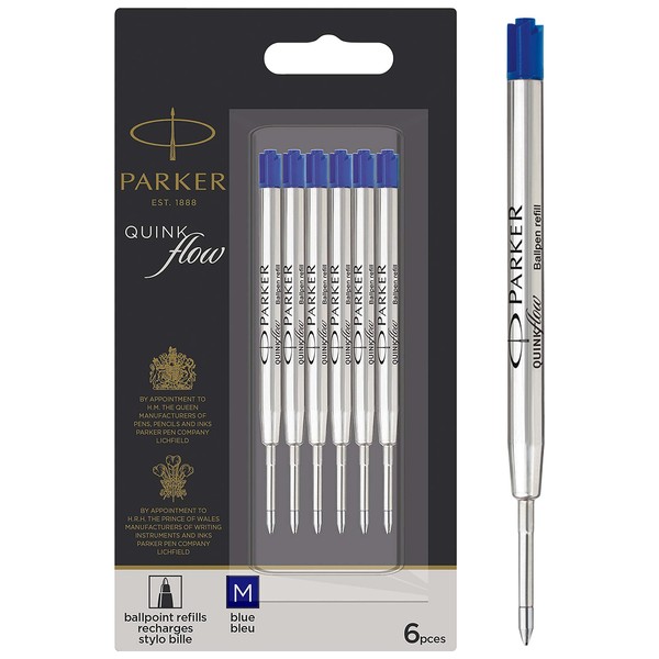 Parker Ballpoint Pen Refills | Medium Point | Blue QUINKflow Ink | 6 Count Value Pack