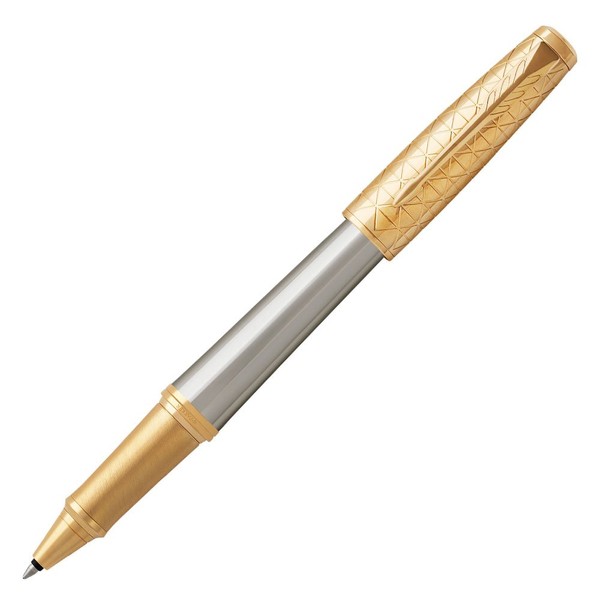 - Grey anodized aluminum barrel and a gold finish cap etched with an intricate modern pattern are complemented by gold accents and the signature PARKER arrow clip