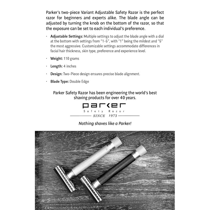 - START WITH A PREMIUM BLADE - 5 Parker Premium Platinum Double Edge Safety Razor Blades Included. Our world class razor comes with a world class blade to deliver a close and comfortable shave out of the box.
