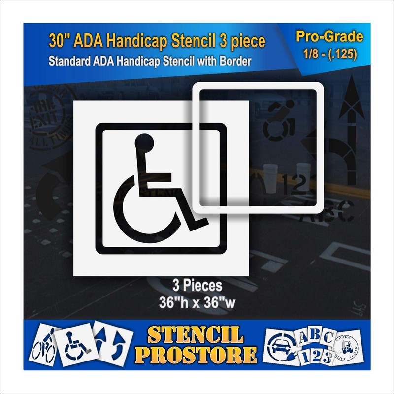 Parking Lot Stencil - 30 in - Handicap Stencil with Solid Border (2" Stroke) - 3pc Stencil - 36'' x 36'' x 1/8" (128 mil) - Pro-Grade