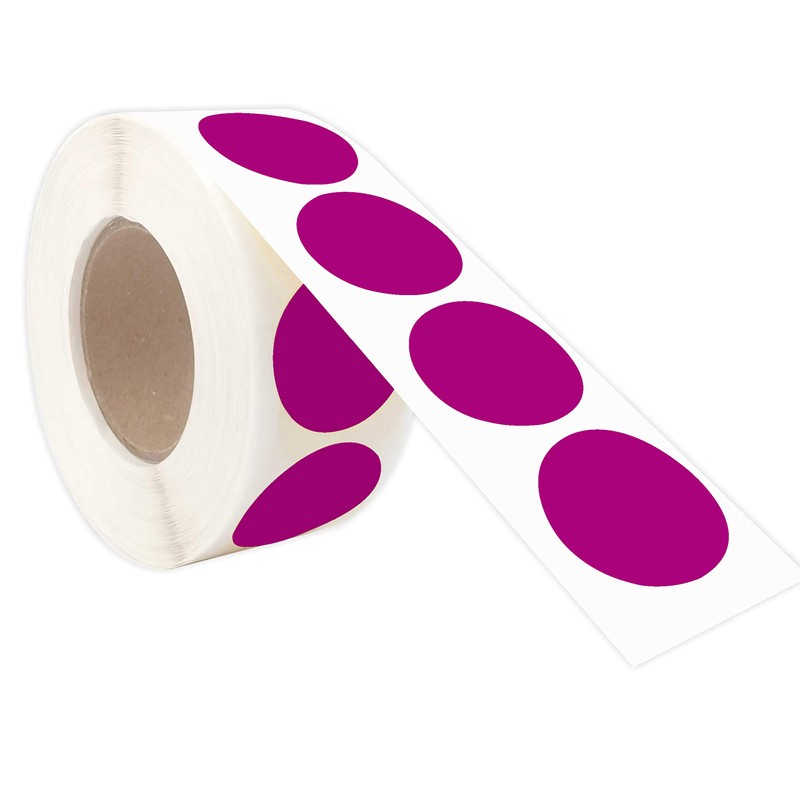 - 1000pcs coding adhesive labels on a roll. 1” diameter, Bright Purple Color-Code Dot Stickers.