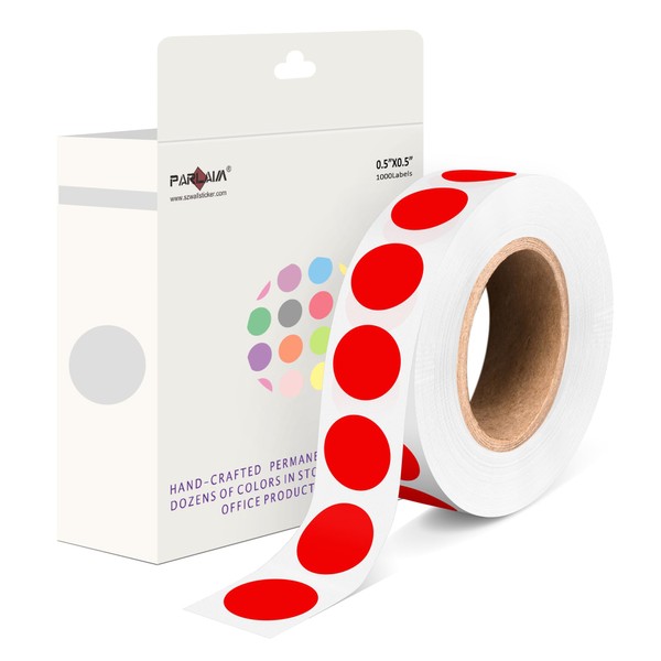 PARLAIM 1000 Pack 0.5 inch Diameter Round Dot Stickers, Red Color-Coding Circ...