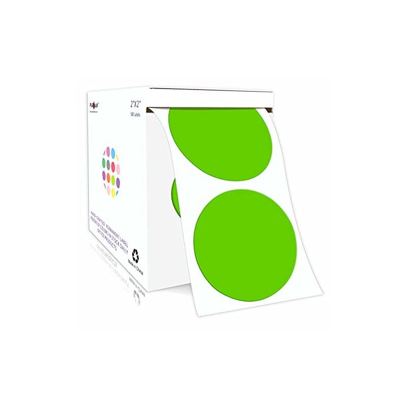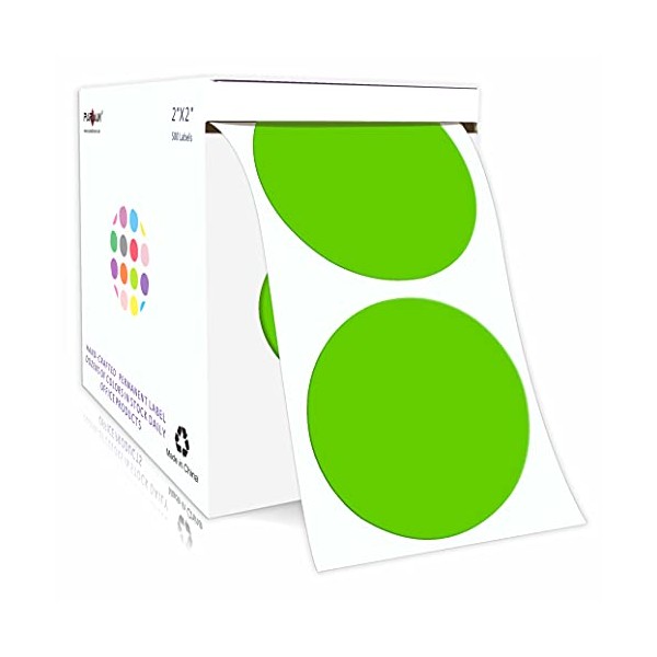 PARLAIM 2 Inch Round Permanent Adhesive Color-Code Dot Stickers,500 per Roll dots Label Dispenser Box, Circle Stickers Label(Light Green)