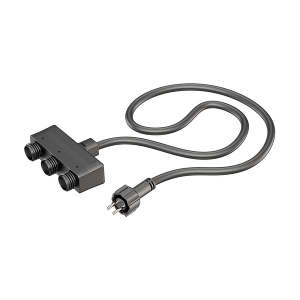 The one meter long triple connector is the appropriate connector cable for our LED lights with IP44 plug-in system. With the connector you can our LED lighting systems individually arrange and connect. The linking element is waterproof and therefore protected for outdoor use.