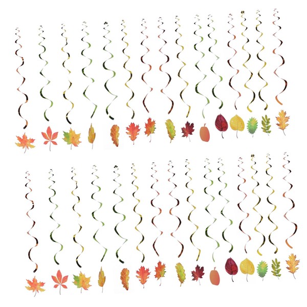 Parliky 30pcs Thanksgiving Hanging Swirl Decorations Spiral Pendant Decor for Autumn Parties Fall Theme Swirls Maple Leaves for Home and Classroom Celebration Random Style