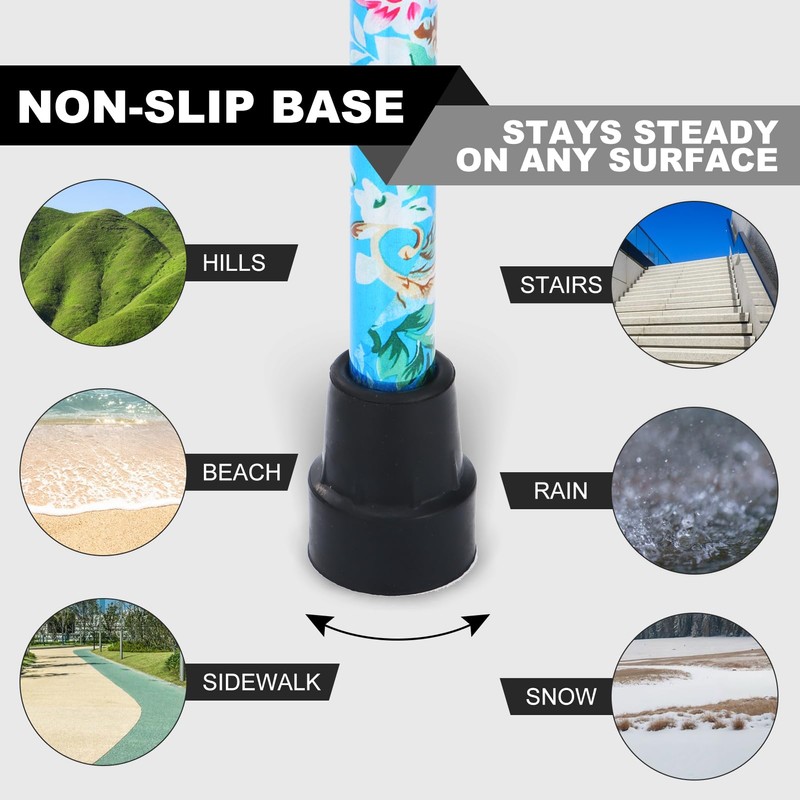 - NON-SLIP RUBBER TIP - Collapsing Design to store and carry along with you conveniently. This Walking cane capped with a slip-resistant rubber tip for additional traction and stability.