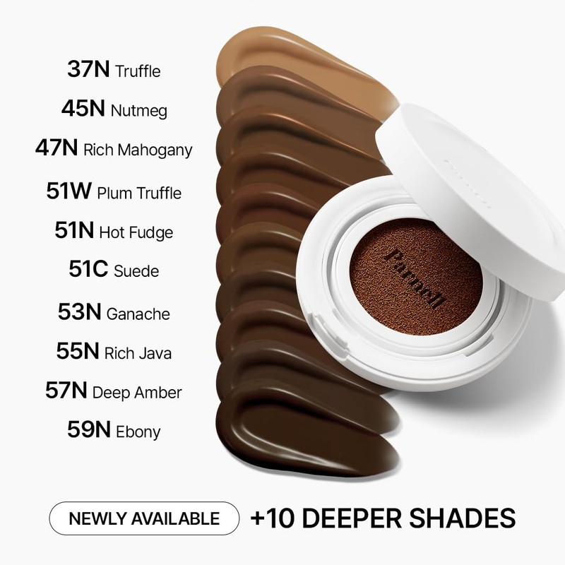 Parnell Cicamanu Serum Cushion 59N Ebony 0.52 fl oz | Hydrating Serum Foundation for Soothing, Pore Blurring & Radiant Glass Skin | Lightweight Korean Cushion for Sensitive Skin | K-Beauty