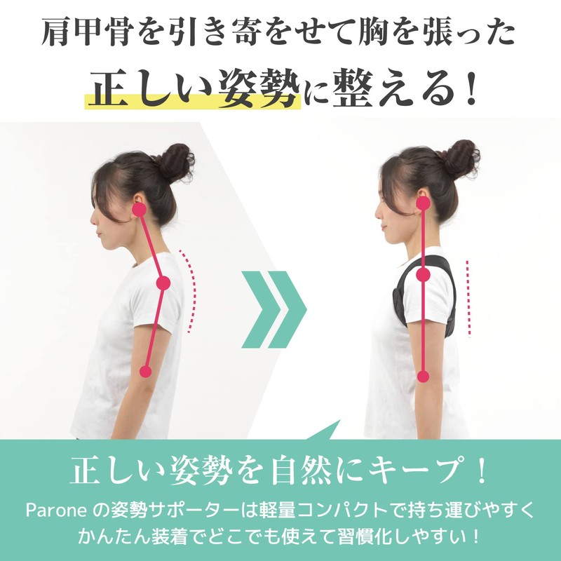 Parone 姿勢サポーター 姿勢ベルト 猫背ベルト 男女兼用 背中 収納袋付き (Mサイズ)