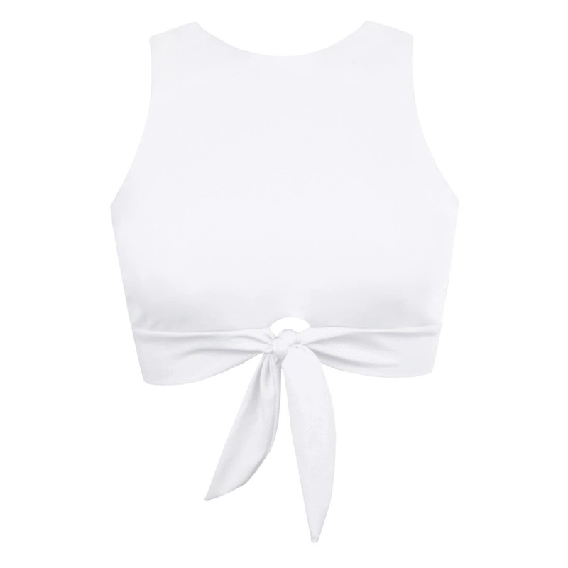 - L (US10-US12): simple pero elegante: varios colores para elegir. Negro sólido, rojo, blanco nunca pasa de moda. Encantadora playera de cuello redondo ajustada El nudo frontal está cuidadosamente diseñado, tan adorable y fascinante. Diseño deportivo y bikini para hacer una parte superior de bikini tan cómoda. Correas de hombro de ancho medio decoradas con un nudo de corbata en la parte delantera, elegante cuello redondo bajo estilo deportivo para una playera corta clásica.