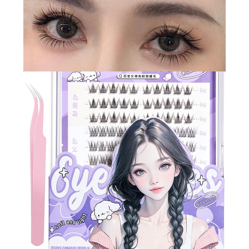 Partially False Eyelashes, 138 Bundles, No Glue Required, High Capacity, Natural Point Fit Eyelash Extensions, No Glue Required, Actress, Beginners, Long Lasting Tweezers Included