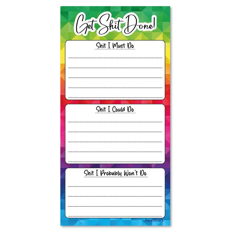 PartiKraft - Get Sh*t Done! - Sweary To Do List Notepad - 50 Sheet DL Note Pad (1 x Notepad)