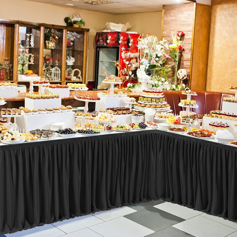 Occasion: Black Ruffle table skirt perfect for trade show wedding receptions, dessert cake table, buffet table, baby shower, birthday party, restaurant meeting,dining table,gift table.