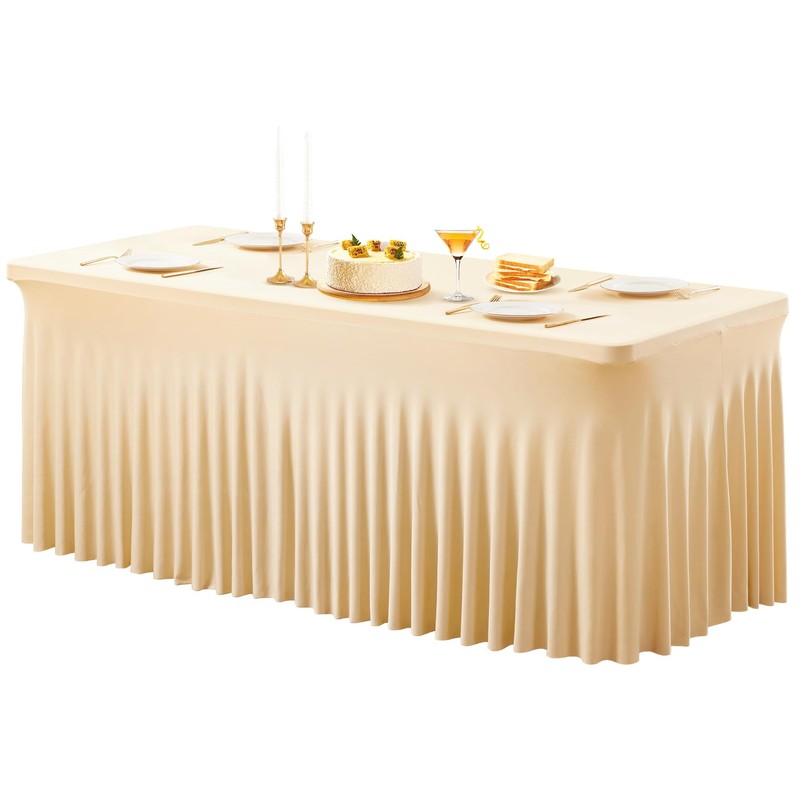 PARTISKY Champagne Table Skirts for Rectangle Tables 8ft Spandex Table Covers 8ft Table Cloth Rectangle Tables Champagne Stretchable Table Clothes for 8 Foot Rectangle Folding Tables