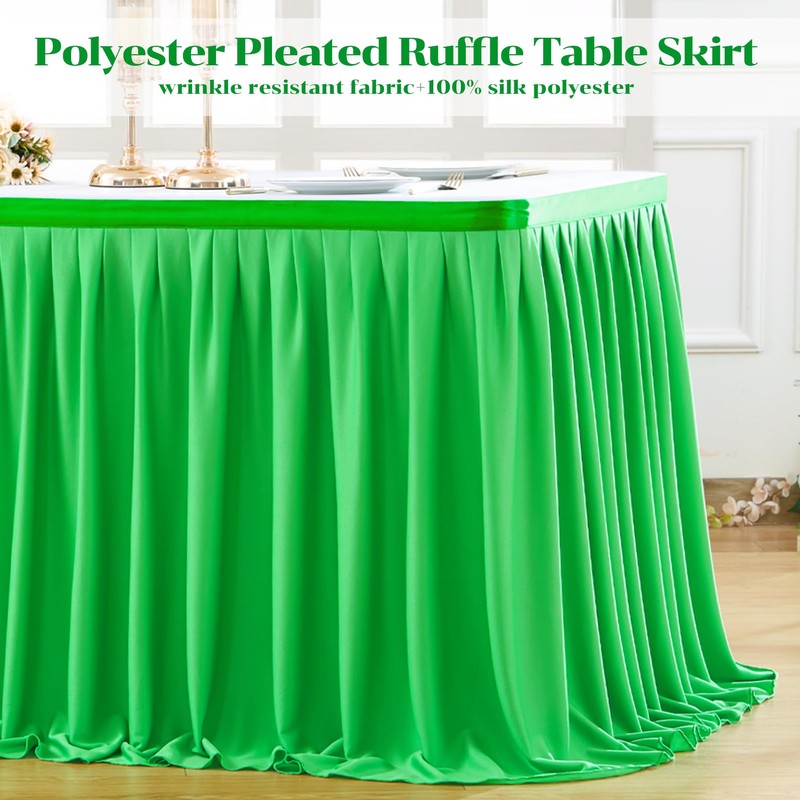 - Material: Green Polyester table skirt made of 100% silk polyester available for superior softness and shine, Plain and simple table cloth used smooth sturdy and reusable