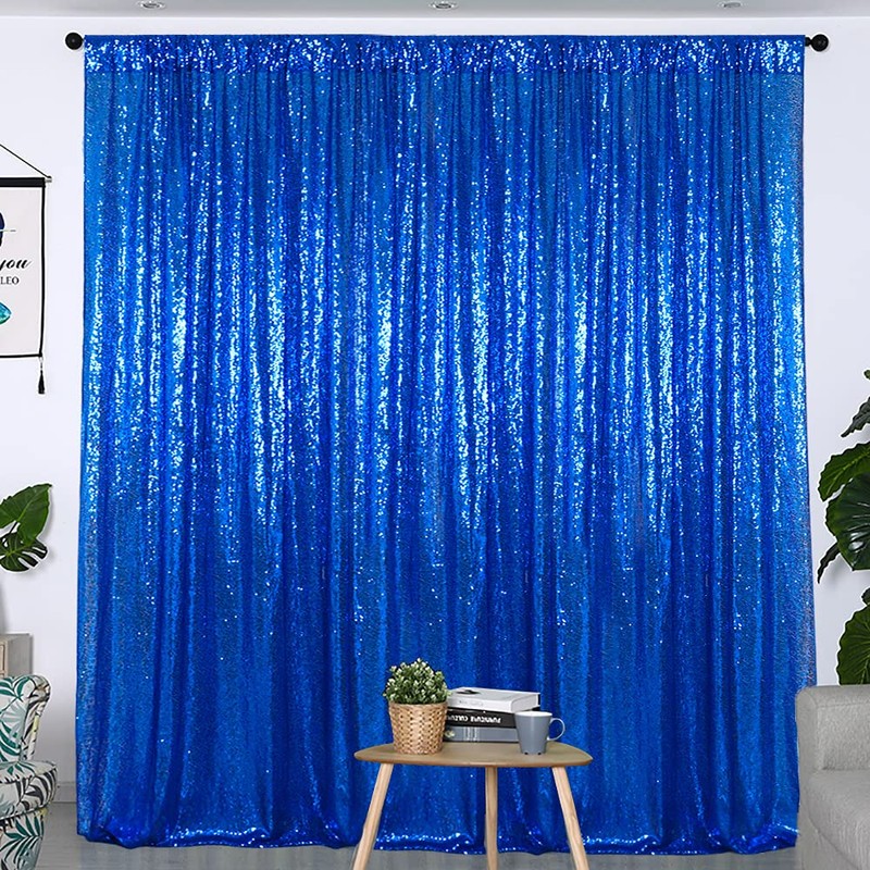 Partisout Sequin Curtain Backdrop 8ftx8ft Sequin Backdrop Sequence Backdrop Party Glitter Backdrop Sparkle Backdrop Wedding Photo Backdrop and Shimmer Backdrop (8ftx8ft, Royal Blue)
