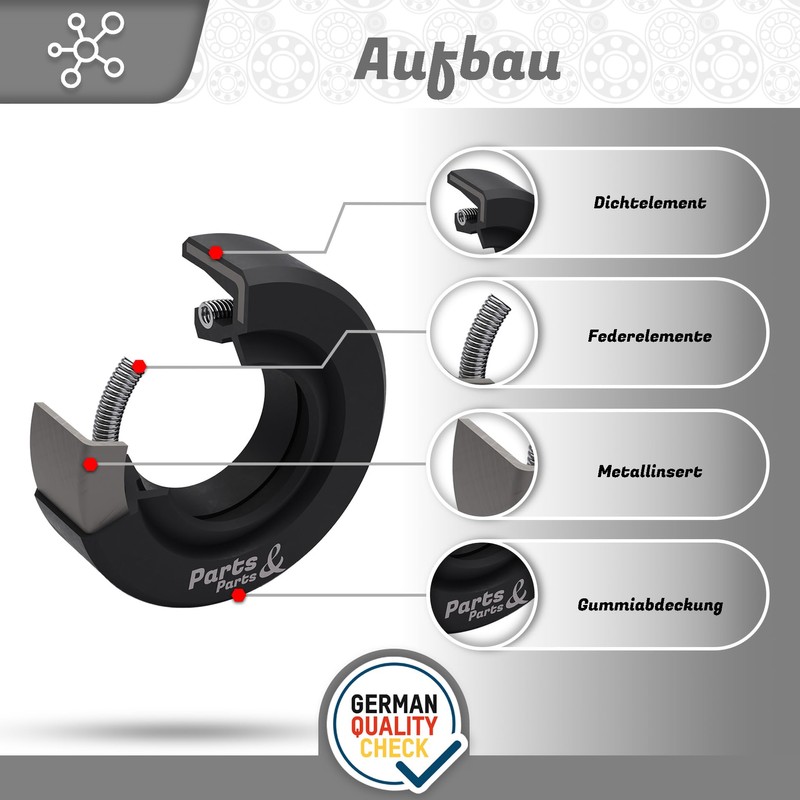 The Parts and Parts radial shaft seal 12 x 23 x 6 mm has been designed to provide a safe, leak-free seal for engines, pumps, transmissions and hydraulic systems. This seal ring shaft seal according to DIN 3760 prevents the ingress of dust, dirt and impurities while keeping the lubricants inside, ensuring smooth operation and a longer life of the system. Whether in the automotive industry, industry or mechanical engineering, this high-performance shaft seal reduces friction, minimises wear and increases efficiency. Its tight and durable seal ensures the smooth movement of rotating shafts and prevents oil leaks and mechanical failures in high speed or high pressure environments.