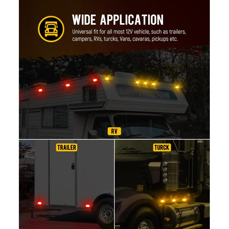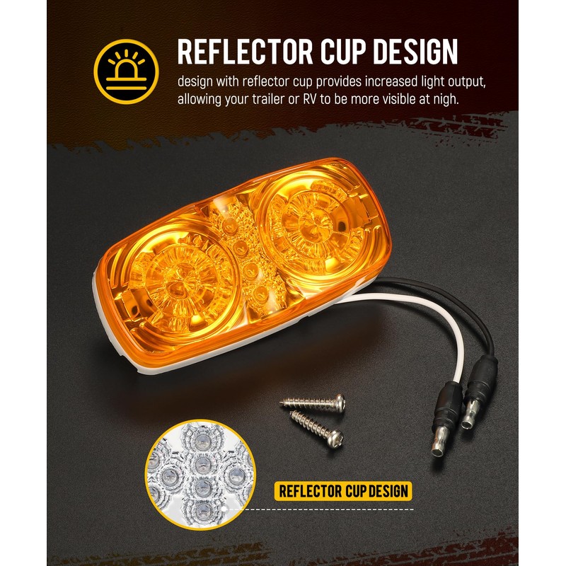 - 【Wide Application】The double bullseye led marker lights fit for most of all 12V vehicles, like RV, camper, trailers, semi-trailer, travel trailer, truck, motorhome etc; Serves as side markers, clerance lights, indicators, running light etc