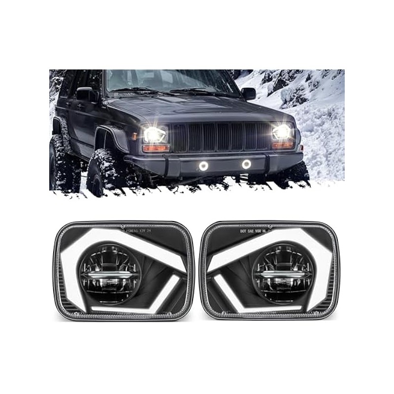 Partsam 2025 H6054 LED Headlights 7x6 5x7 Headlamp Hi/Low Sealed Beam Lights [DOT] [Start & End Animation] [Anti-glare] [DRL] [Sequential Turn Signal] Compatible with Cherokee XJ Wrangler YJ D21 etc