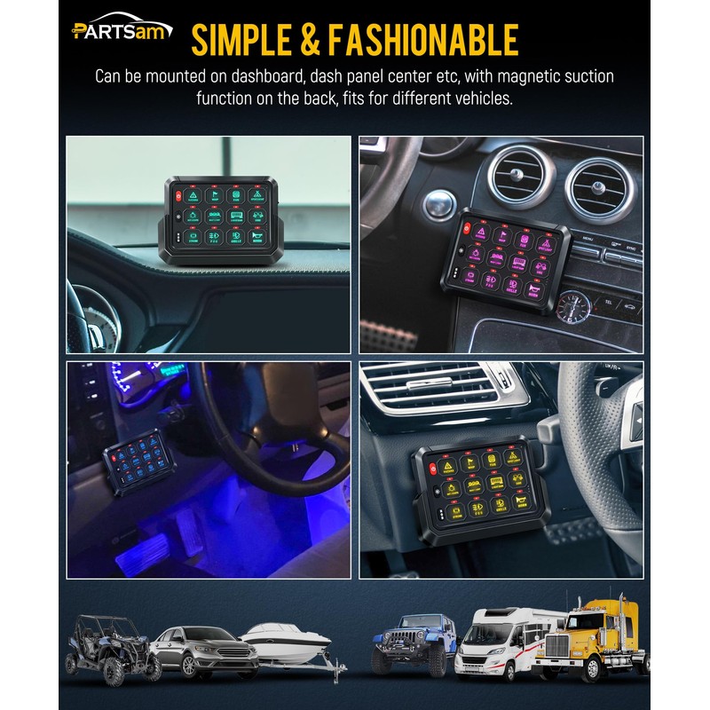 • 【Applicable】Partsam 5.5" RGB 8 gang wireless switch panel is designed to let you add professional control to your electronic devices in an easy-to-install universal circuit control relay system box. For example, install it on an off-road vehicle, truck, RV, ATV, UTV, SUV, or boat.