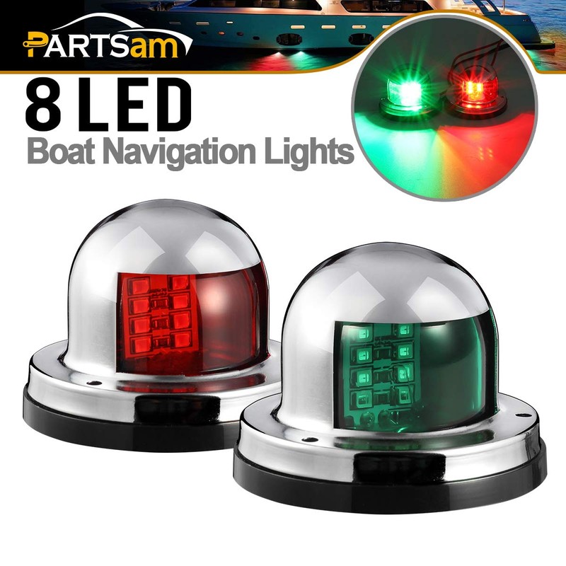 Partsam 2Pcs Marine Boat Light, Red Green LED Bow Navigation Lights, Deck Port Side Starboard Lights Sailing Signal Light for Pontoon Yacht Sailboat Speedboat Fishing Boats, IP67 Waterproof, DC 12V