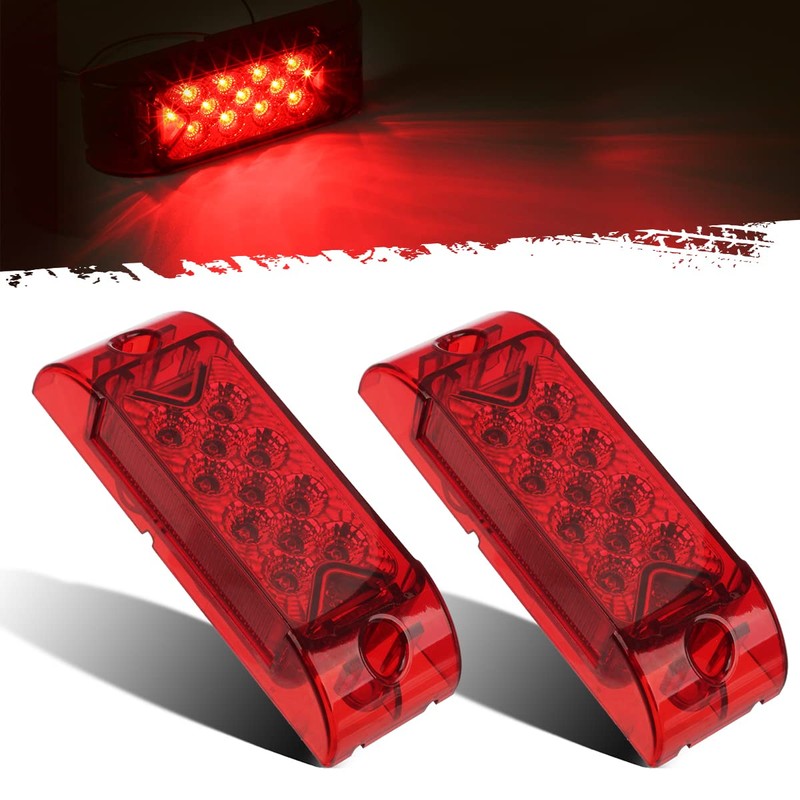 • Partsam Pack2 Sealed 6" x 2" Side Marker Light 13 Led Rectangle / Rectangular Light Surface Mount w/reflector -- Red Lens. 12V DC;