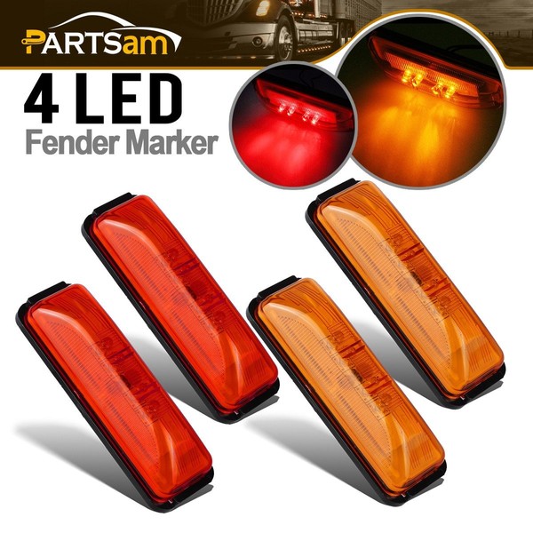 Partsam 4x Waterproof Amber/Red 4LED Side Marker Light for Trailer Truck Boat DC12V - Slim Waist