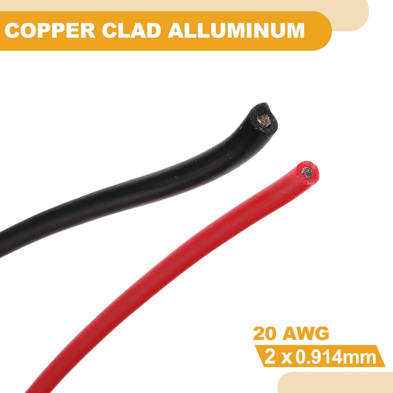 Partuto 1 Set 20AWG Universal Ground Wire Car Radio, Automotive, Car Speakers Power Wire Fully Insulated& Soft Touch Jacket TC Black,Red 26FT Black+26FT Red