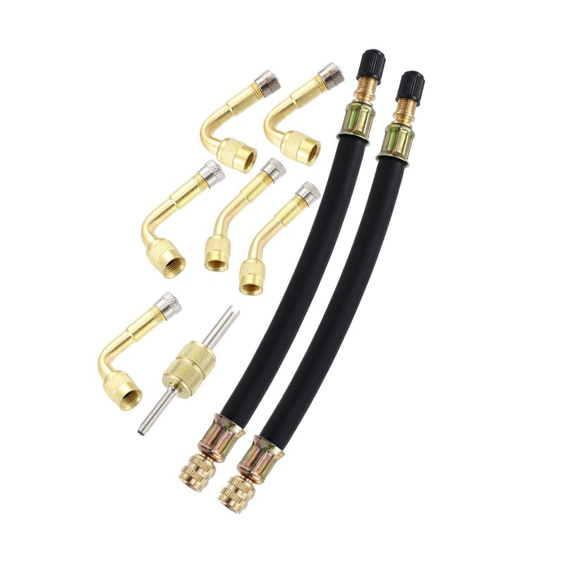 - Comfortable: Package Includes: 2 x Flexible Dual Valve Stem Extender Pipe, 1 x Valve Core Removal Tool , 6 x Multi Degree 45 90 135 Adapter