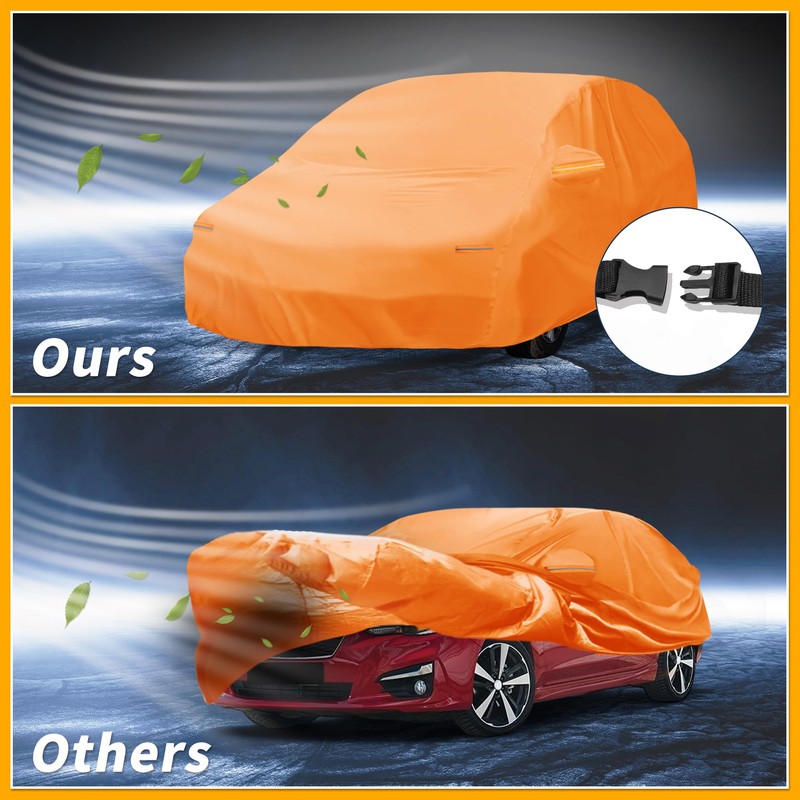 - [ALL WEATHER PROTECTION] The full car cover's ability to resist weather is truly outstanding. Its design is engineered to provide maximum protection against the elements. Rain, snow, hail, and harsh sunlight can all cause significant damage to a vehicle over time. This car cover acts as a barrier, keeping these elements at bay. By preventing water from seeping into the car, it reduces the risk of rust formation and other types of damage that can occur when water gets inside
