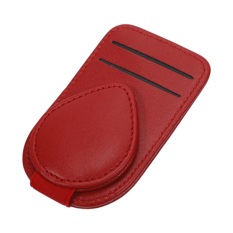 Partuto Car Sunglasses Clip Magnetic Universal Sun Visor Eyeglasses Holder Clip Leather Red 11.5x7cm 1 Pcs
