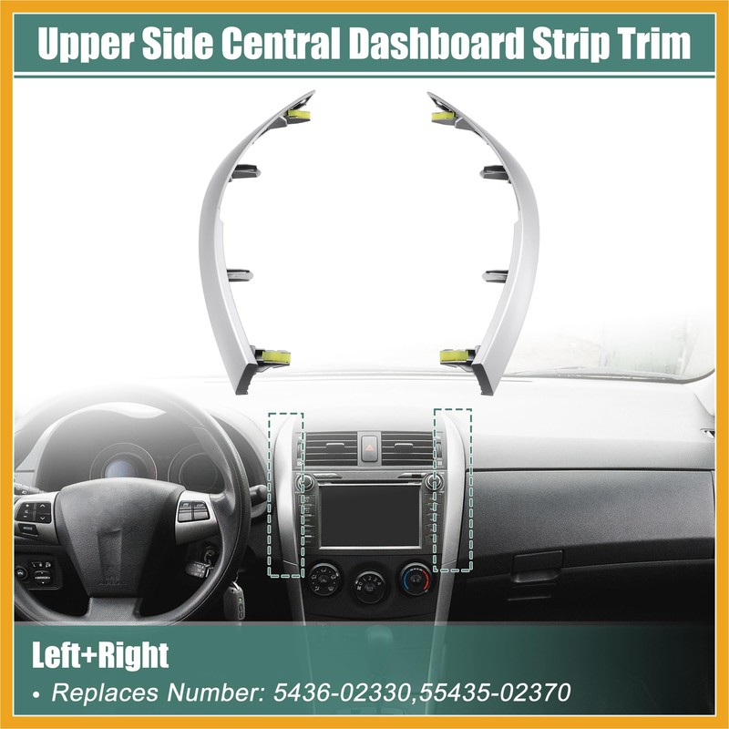 Partuto Left and Right Upper Side Central Dashboard Cover Strip Trim for Toyota 55436-02330 55435-02370 Center Dash Navigation Side A/C Outlet Air Vent Panel Strip 1 Pair Replacement