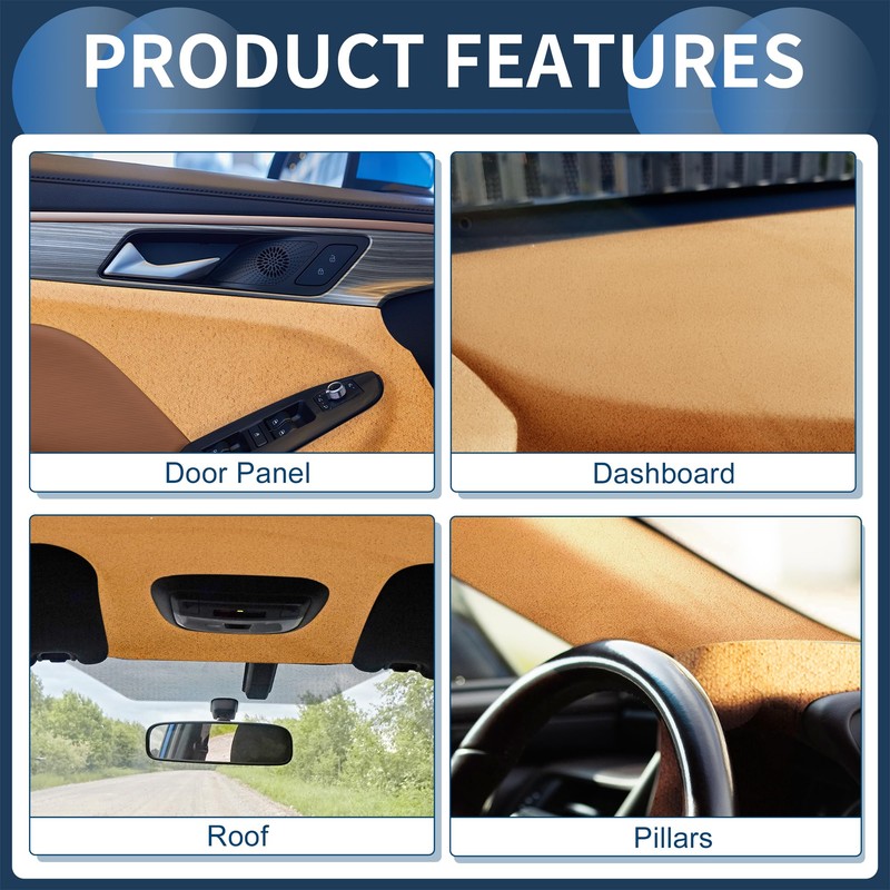 - [Wide Application] Widely applied for cars, trucks, pickups, RVs, SUVs, marine, boats for automotive headliner, sunroof panel, seats, door panels, etc. It does a good job in interior trim upholstery, roof ceiling, steering wheel, A B C pillar, dashboard, center console, carpet lining, aging broken faded DIY repair replacement.