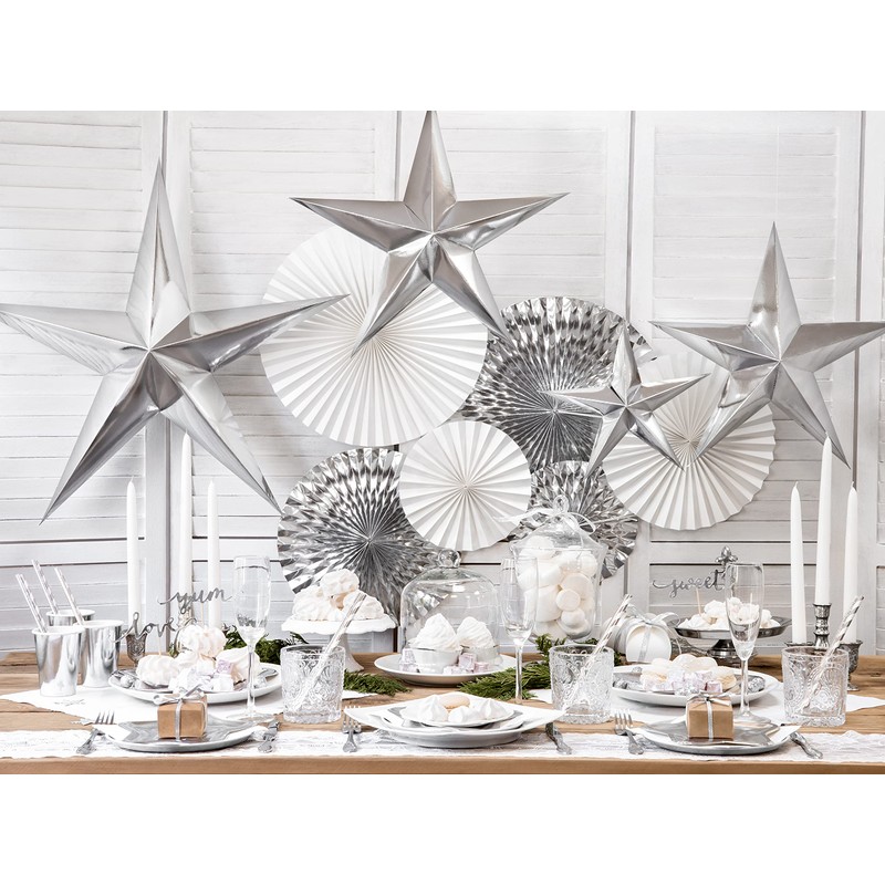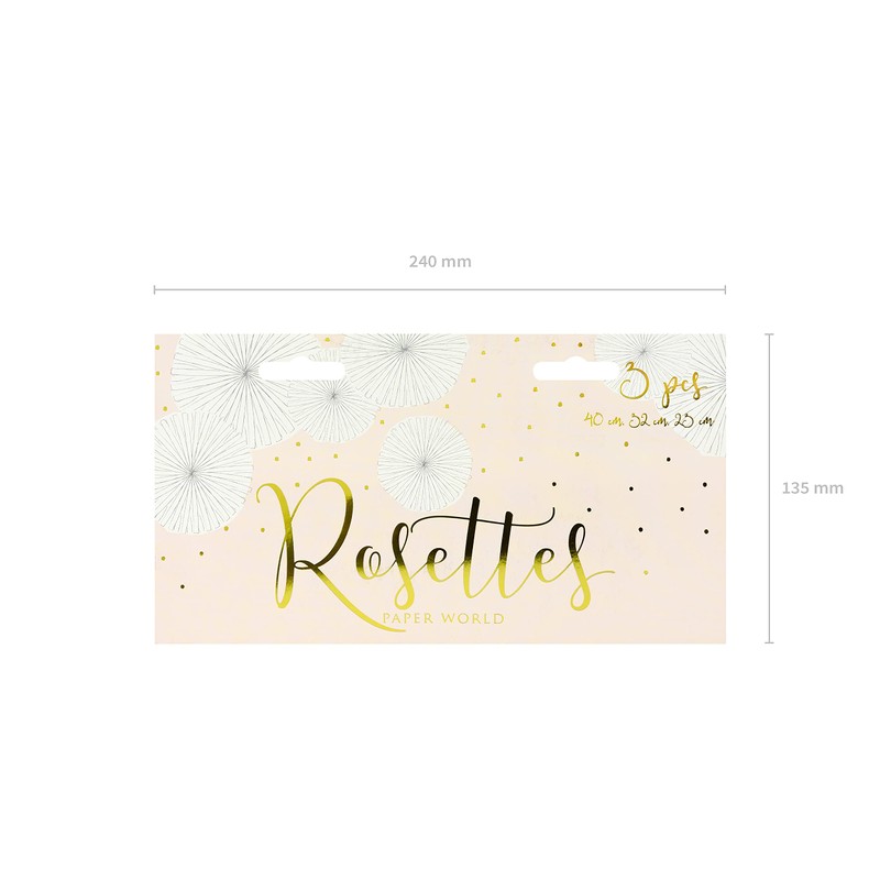 - Decorative rosettes in the colour off white are a beautiful decoration for any table and room where the party takes place.
