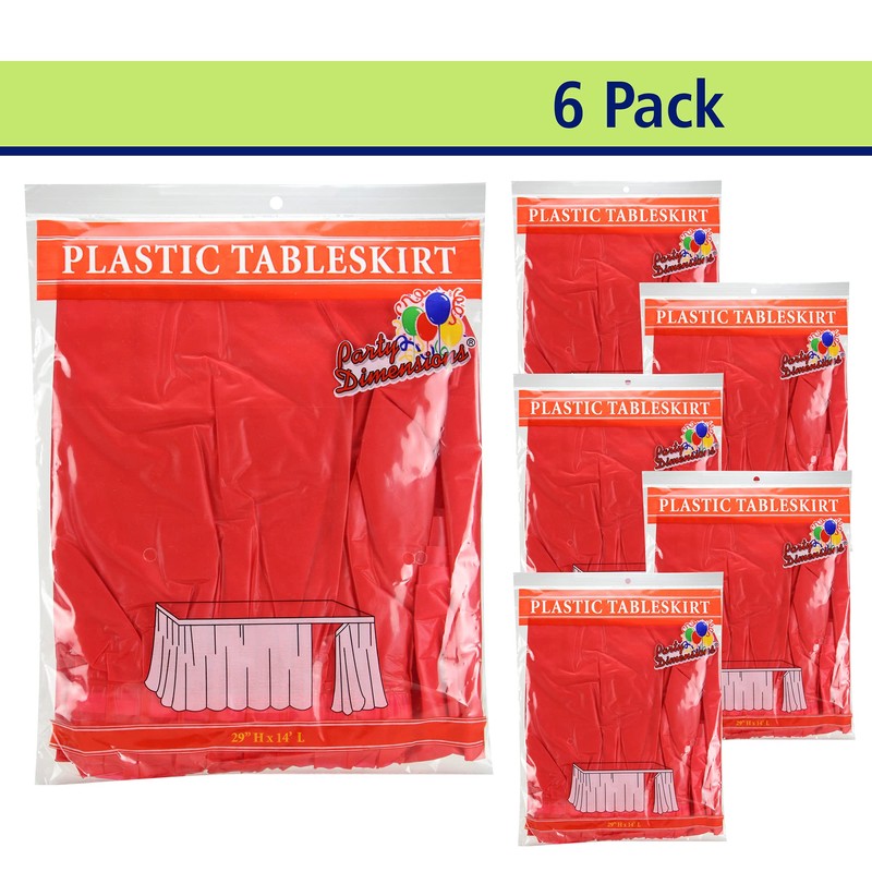 Party Dimensions Plastic Table Skirt, 29-Inches by 14-Feet - Red - 6 Pack