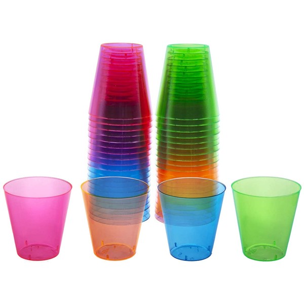 Party Essentials Hard Plastic 2-Ounce Shot/Shooter Glasses, 40-Count, Assorted Neon