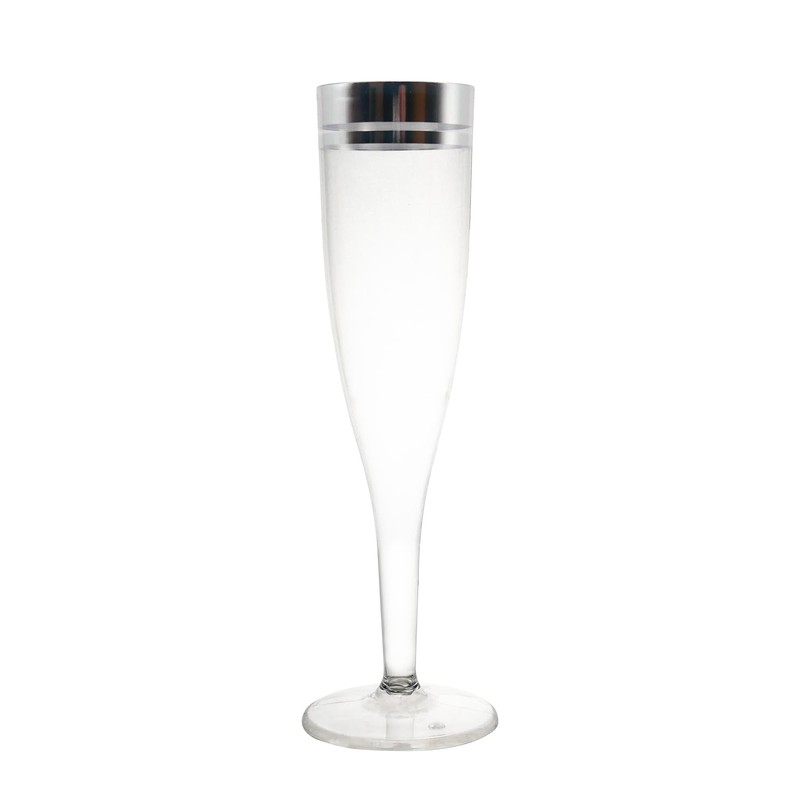 Party Essentials Plastic Champagne Flute, 5-Ounce Capacity, Clear With Silver Rim, Case of 100
