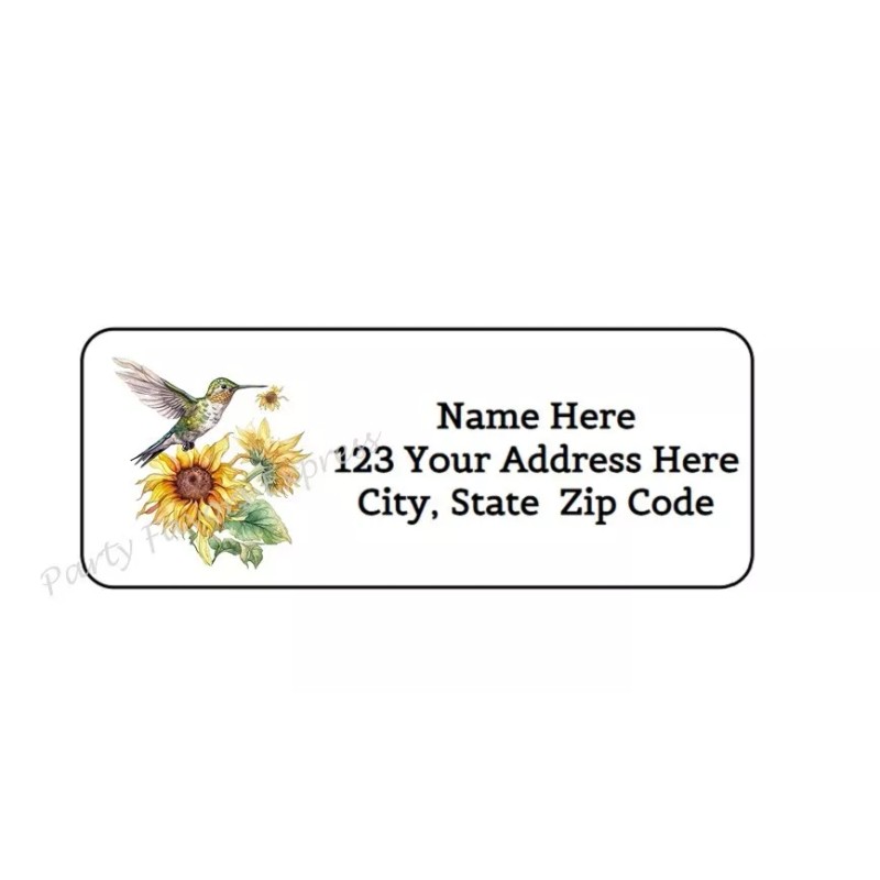 Party Favors Express 30 HUMMINGBIRD SUNFLOWER PERSONALIZED RETURN ADDRESS LABELS 1 in X 2.625 in