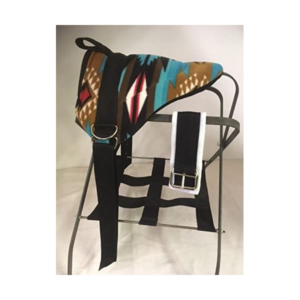 Party Ponies Miniature Horse/SM Pony Bareback Saddle with Stirrups - Turquoise SW - 15" Double Buckle Felt Cinch Upgrade Special
