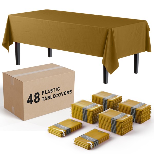 • Includes: This 48-pack of gold tablecloths for rectangle tables measures 54" x 108" fitting rectangle tables up to 8 feet long. Whether you're looking for plastic table cloths bulk, picnic table covers, or gold table cloth rectangle table, these disposable table covers rectangle are sure to meet your party needs.