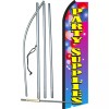 This Swooper Flag has a vibrant colored background with quality graphics and text which makes this sign an ideal advertising banner. The feather banners sheer size alone can be seen from afar and is more effective at reaching customers than other traditional signs. Each banner is single sided with a bleed through to the back which means that there is a mirror image of the graphics visible on the reverse side.