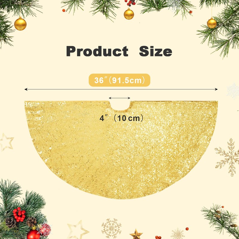 - Material: The tree skirt for Christmas tree is made by sequin fabric. It is all covered by 3mm sequins, very beautiful in the lights of Christmas tree. Bring more sparkly and glitter than and other tree skirt material.