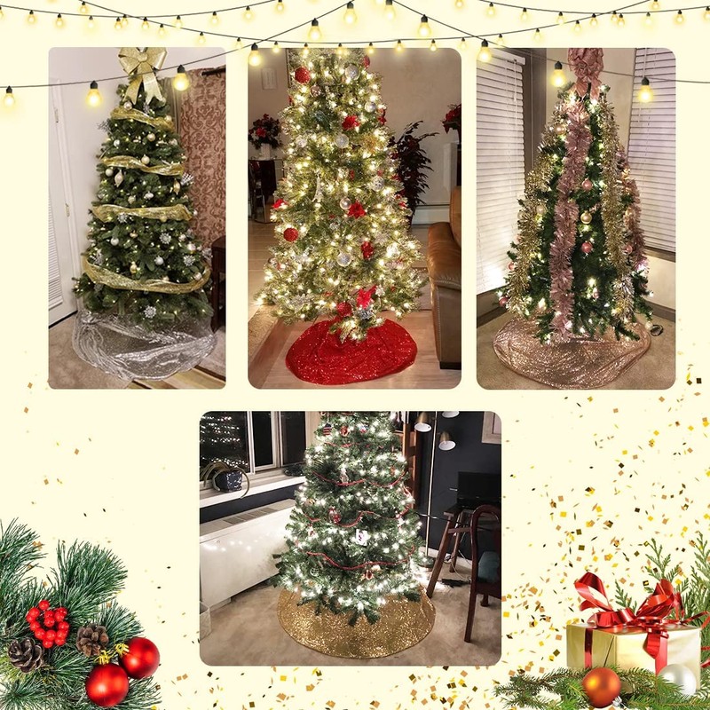 - Sparkling Elegance: Our sequined Christmas tree skirt adds a touch of glamour and sophistication to any festive setting. It beautifully catches the light, creating a shimmering holiday spectacle.