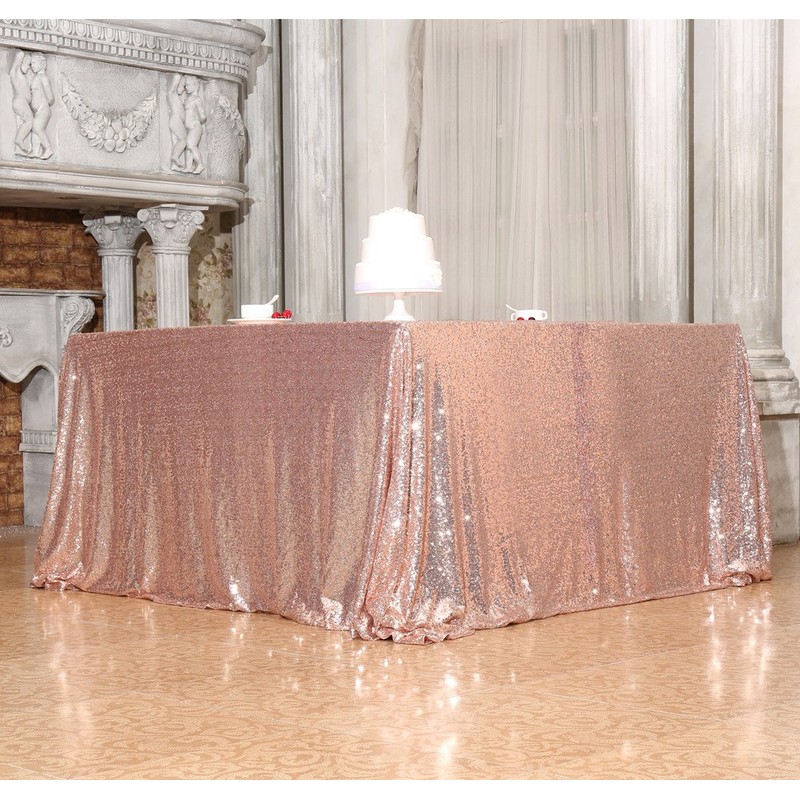 PartyDelight Sequin Tablecloth, Sequin Table Overlay, Square, 70"x70", Rose Gold