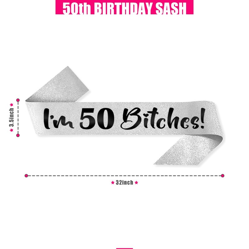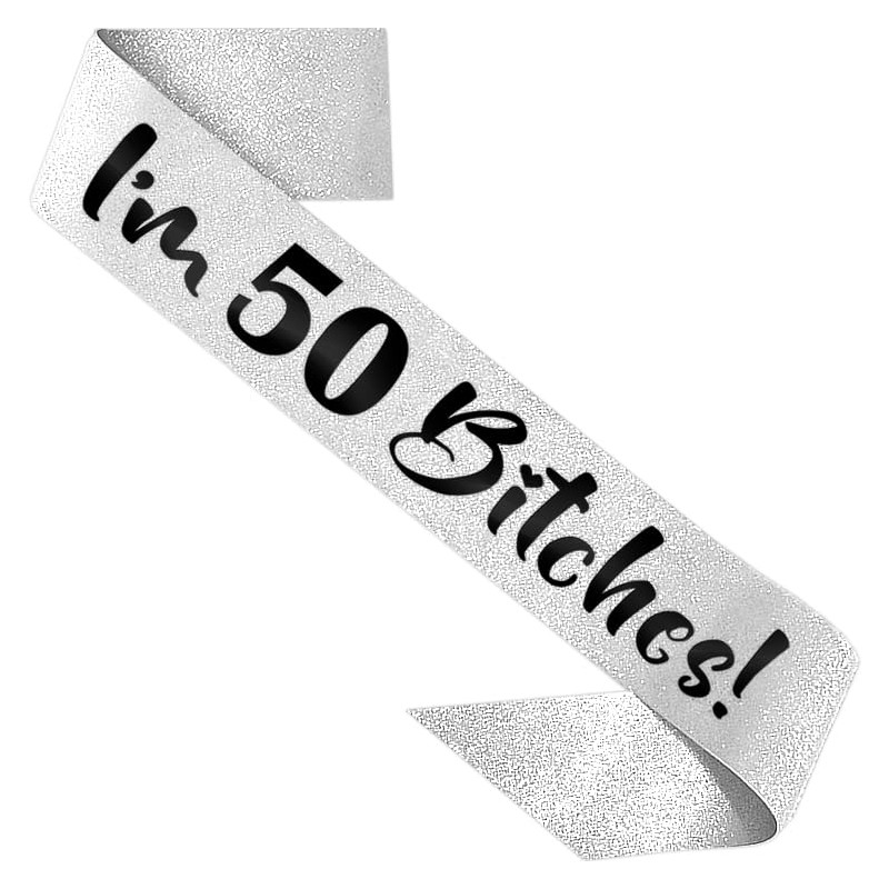 - Elegant and Classy I'm 50 es! Sash for 50th Birthday Decorations : made of high quality sparkling Silver Glitter fabric with Black compressed foil letters that will compliment any outfit in any color